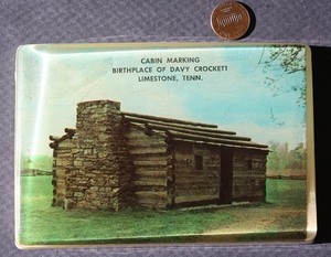 Details About 1960s Era Limestone Tennessee Davy Crockett Birthplace Cabin Lucite Paperweight